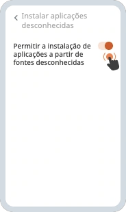 Permitir Instalação: Ativa a opção que permite a instalação de aplicações de fontes desconhecidas.